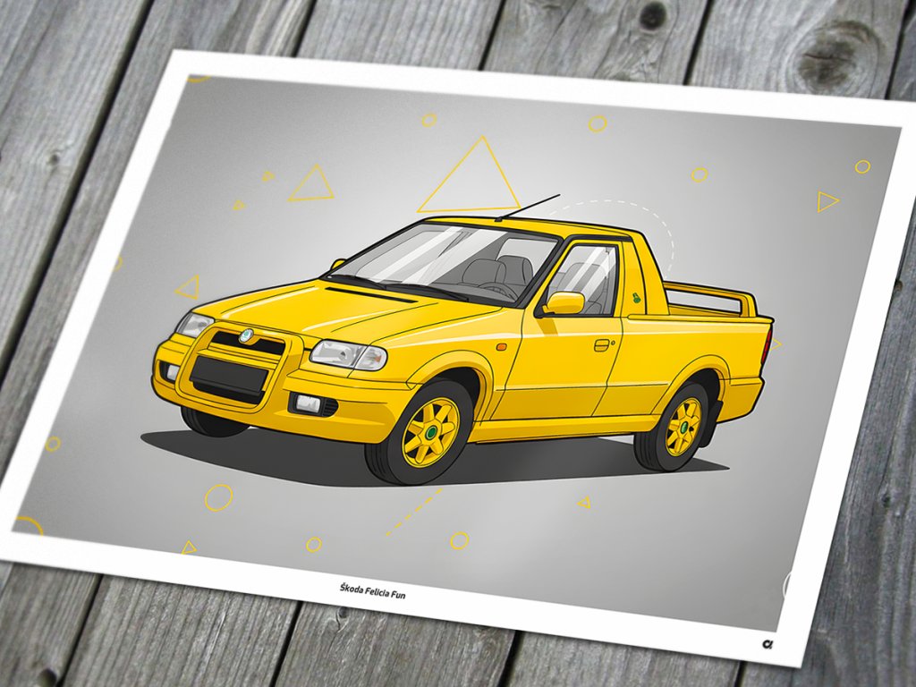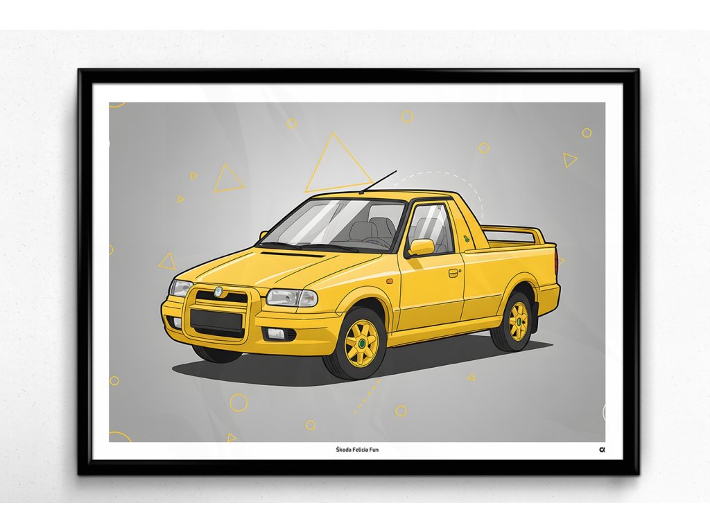 Škoda Felicia Fun je ikonický pick-up s nezaměnitelným designem a duší dobrodruha. Teď může být součástí i vaší sbírky na stylovém plakátu.
