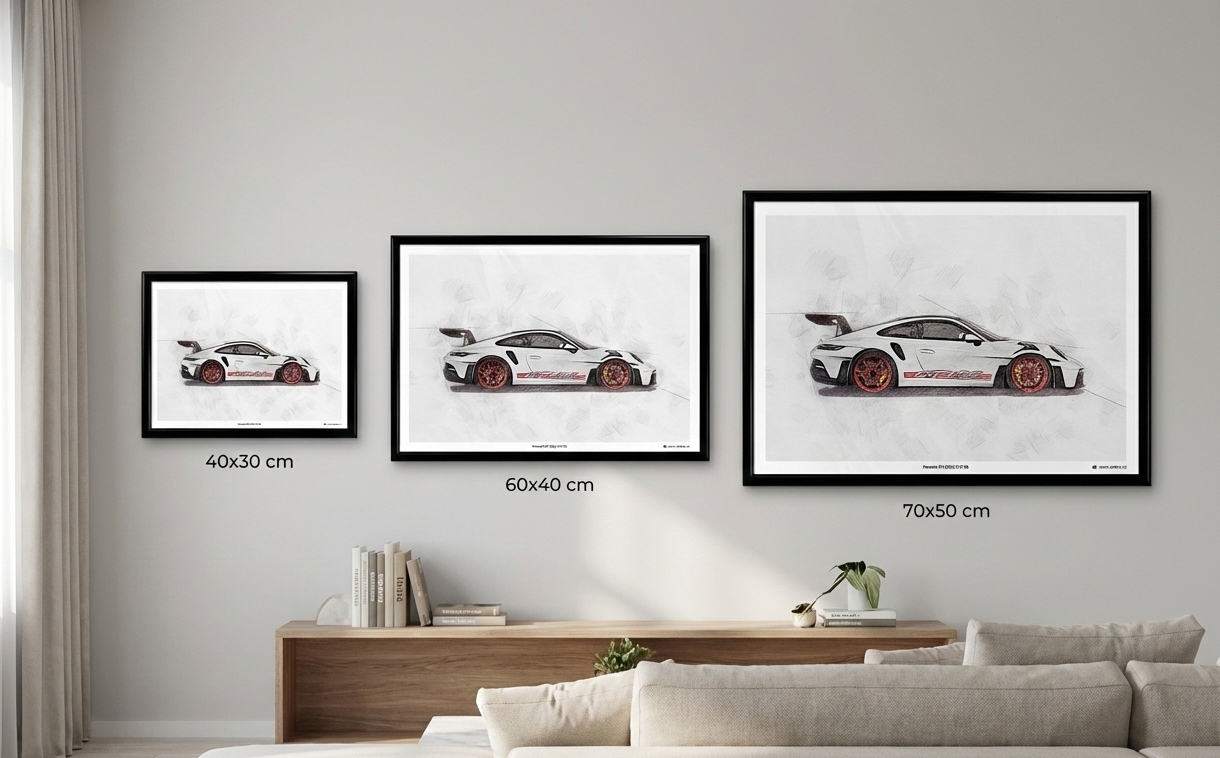 - 🎨 Styl Modern Vector: Čisté linie, syté barvy a moderní "plochý" design. Vypadá jako oficiální plakát automobilky. Ideální pro moderní vozy a tuning.